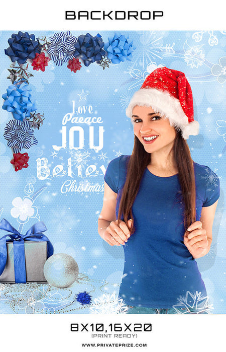 Love Peace Christmas Digital Backdrop Blue