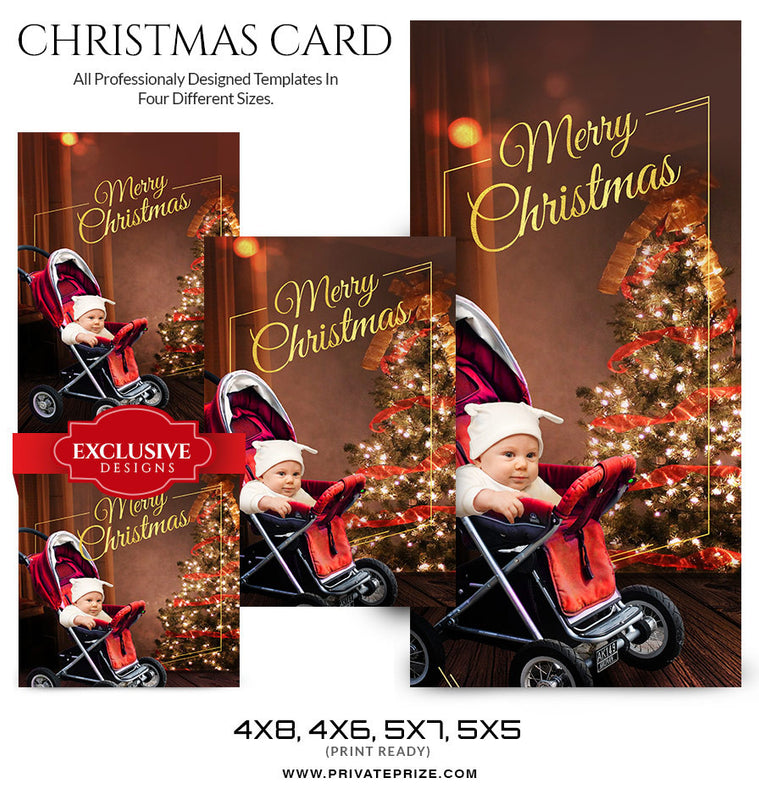 4(w)x8(h), 4(w)x6(h),5(w)x7(h), 5(w)x5(h) Christmas Card Photoshop Template - 4 PSD File